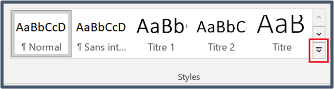 To access the Styles pane, select the expansion arrow (Alt, H, F, Y) and the Styles pane will open. Select Title. The text will be formatted to the Title style and highlighted in the Styles pane.